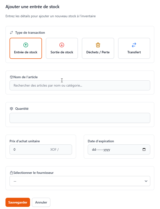 Quantité : saisissez le nombre d’unités à ajouter au stock.