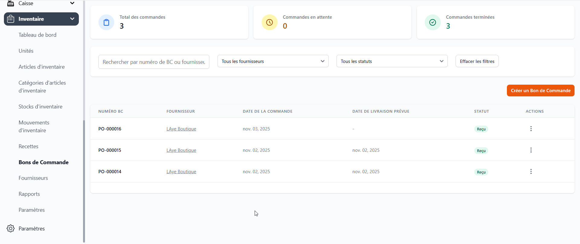 Le module Stocks d’inventaire permet d’ajouter directement des articles au stock, sans passer par un Bon de Commande.